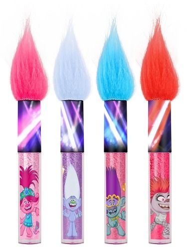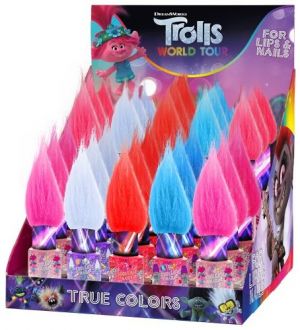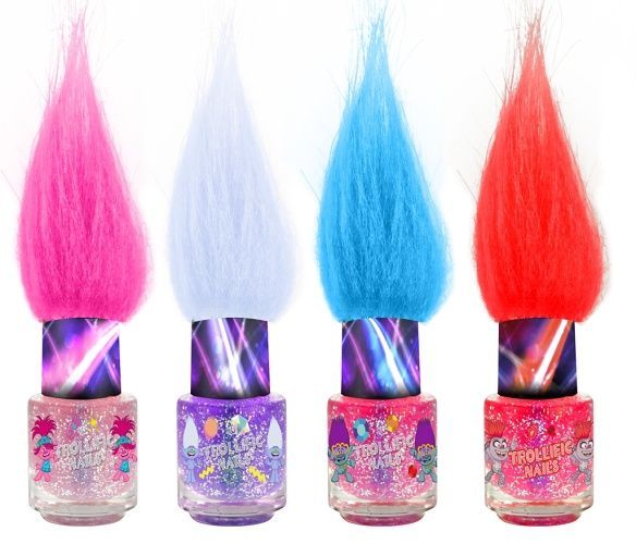Lesk na rty/lak na nehty Troll s vlásky – ve čtyřech různých barvách. Dermatologicky testováno, vyhovuje přísným normám EU. Zdravotně nezávadné.