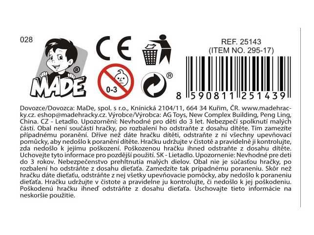 Toto letadlo o rozměrech 15 x 16,4 x 4,6 cm je ideální hračkou pro malé kluky od 3 let. Vyrobeno z kombinace plastu a kovu, nabízí skvělou odolnost a zároveň lehkost. Baleno v blisterovém obalu, který zajišťuje bezpečné doručení. Letadlo nepotřebuje baterie a je připraveno k okamžité hře. Skvělá volba pro malé nadšence do létání.