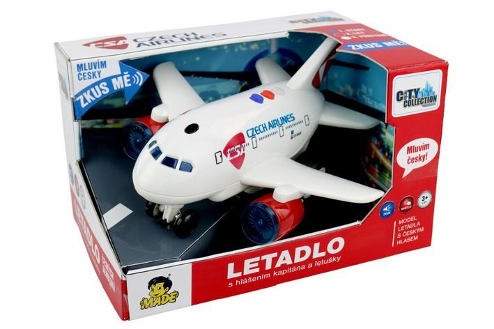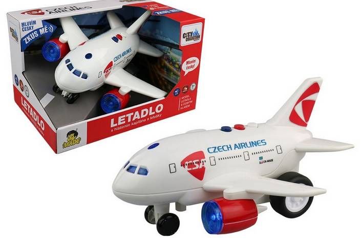 Letadlo ČSA s hlášením kapitána a letušky na setrvačník