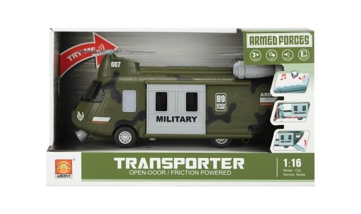 Vojenské letadlo o velikosti v měřítku 1:16 se světelným a zvukovým efektem. Baterie jsou součástí balení. Na baterie: 3x LR44 (jsou součástí balení)