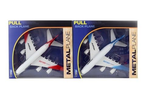 Kovové letadlo na zpětný chod.Napájení na baterie 3xAG13, které jsou součástí balení. Letadlo po stlačení kol vydává zvuky letu a bliká. Baleno v krabici. Rozměry balení cca 22x24,5x6 cm. Velikost letadla cca 22x25 cm. Věk 3+