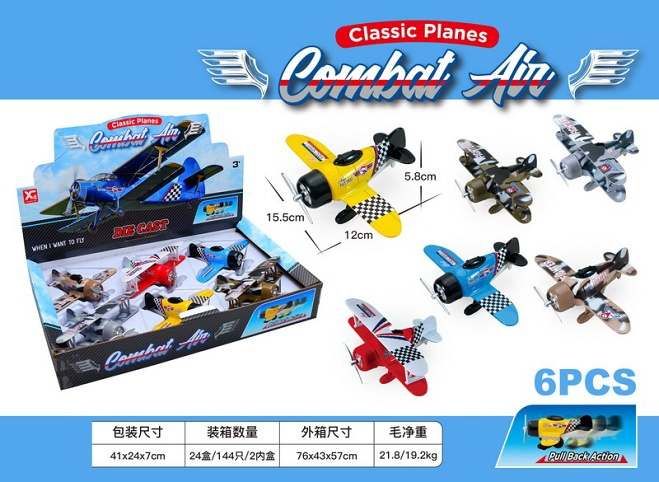 Letadlo kovové. Rozměry 12x15,5x5,8 cm. Na zpětné natažení. 6 ks display box. 6 variant.