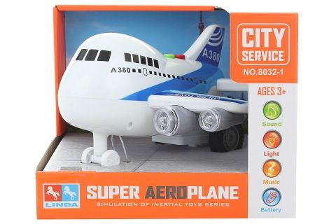 Letadlo na baterie se světlem a zvukem. Napájení 2 AA baterie (nejsou součástí balení). Rozměr letadla cca 22 x 21 cm. Rozměry balení cca 22 x 17,5 x 22 cm. Věk 3+