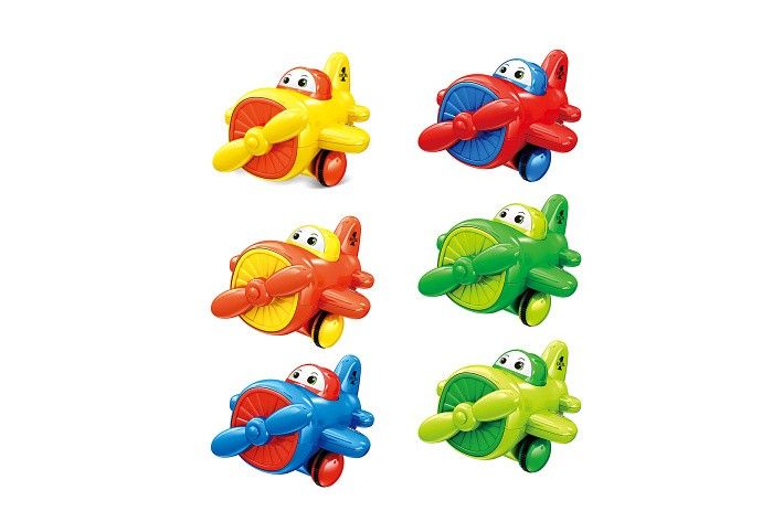 Letadlo na setrvačník. Rozměry 9,8x6,8x9,1 cm. Display box 12 ks. 6 variant.