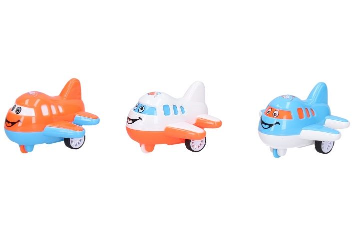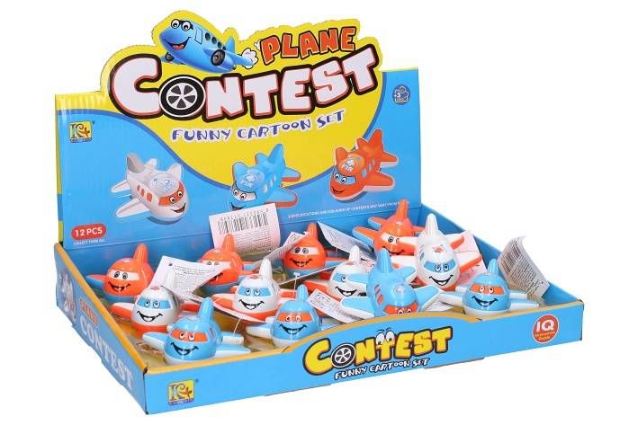 Letadlo na setrvačník. Rozměry 7,5x8x4,5 cm. Display box 12 ks. 3 varianty - bílá, modrá, oranžová.