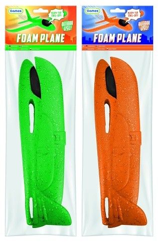 Pěnové letadlo – ve dvou barvách zelená a oranžová. Velikost č. 47 cm.