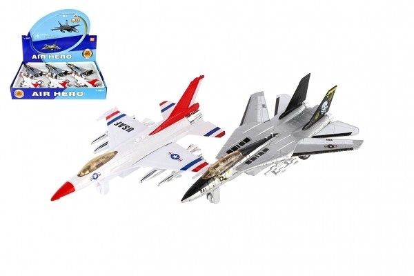 Letadlo/stíhačka kov/plast 19cm na zpětné natažení 2 barvy
