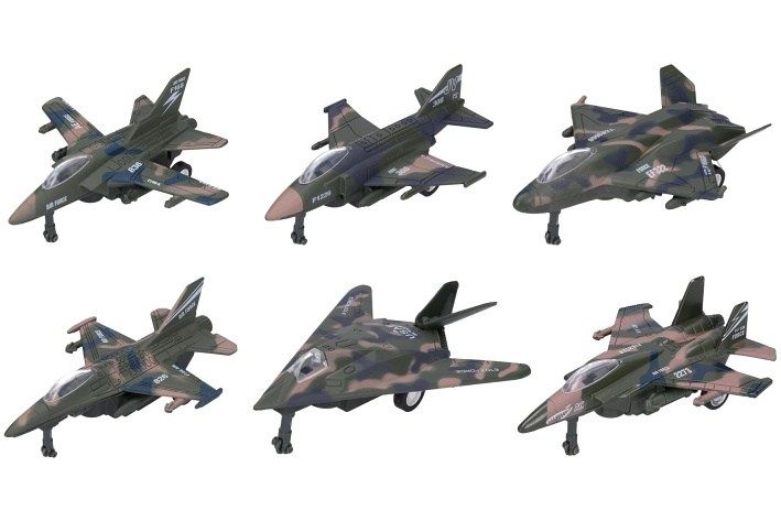 Stíhačka velikost 12cm. 6 různých ks v display boxu, na zpětné natažení. měřítko 1:128