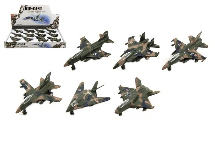 Letadlo/stíhačka vojenská kov/plast 9cm 12ks v boxu