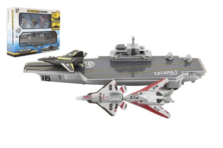 Letadlová loď pro milovníky hraček, zejména lodí. Doplň i ty svou sbírku hraček krásným modelem lodě, ze které je možné ručně katapultovat stíhačky do vzduchu. Sada obsahuje také 3 ks letadel.
