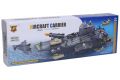 Letadlová loď s vozidly a vojáky set. Rozměry 47,5x21x14,5 cm. Návod na sestavení na obalu. Manuální pohyblivé prvky bez efektů.
