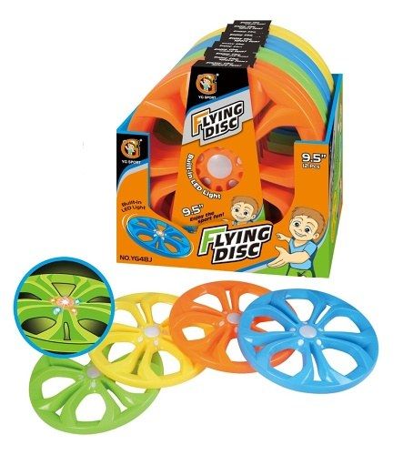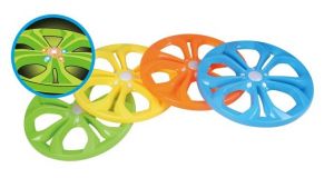 Létající svítící disk ve čtyřech veselých barvách. Na baterie: 3x LR41 (jsou součástí balení)