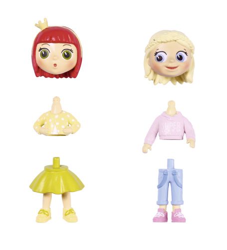 Vyměňuj panenkám hlavu, trup a nohy a vytvoř tak úplně novou postavičku. Hlavička s vlásky ozdobenými kytičkovou čelenkou, tělo s upířím pláštíkem a k tomu třpytivá sukýnka. Nebo! Hlava s korunkou, tělo s tričkem s křidélky a k tomu ploutev mořské panny. Zacvakni jednotlivé části panenky do sebe a ukaž tak, jakou máš právě náladu! Existuje více než 100.000 různých kombinací. Někde je schovaná i vzácná třpytivá panenka!
