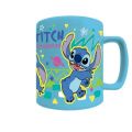 Lilo a Stitch hrnek s návlekem Stitch modrý je originálním produktem z kategorie merch a licenčních dárků, který potěší všechny fanoušky oblíbeného animovaného filmu. Hrnek je vyroben z klasického keramického materiálu v pastelově modré barvě, která je příjemná na pohled a zároveň dobře ladí s motivem postavičky Stitch. Povrch hrnku je zdoben veselými ilustracemi Stitch v různých pózách, doplněnými barevnými geometrickými tvary a hvězdičkami, což dodává výrobku hravý a dynamický vzhled. Výjimečnost tohoto hrnku spočívá v jeho textilním návleku, který je vyroben z měkkého plyšového materiálu v tmavší modré barvě. Návlek je nejen praktický, protože chrání ruce před horkým povrchem hrnku, ale zároveň přidává na atraktivitě produktu. Na návleku je vyšita velká hlava Stitch s vyplazeným jazykem a výraznými ušima, což podtrhuje charakter hrnku jako zábavného a originálního doplňku pro každodenní použití. Textilní obal je pevně přichycený a lze jej snadno sejmout k údržbě. Hrnek má klasický tvar s pohodlným uchem, které umožňuje snadné držení i při naplnění horkými nápoji. Díky použití odolné keramiky je vhodný jak pro teplé, tak i studené nápoje a může být použit doma i v kanceláři. Celkový design je zaměřený na mladší publikum i sběratele licenčních produktů, kteří ocení jak praktickou stránku, tak i estetickou hodnotu hrnku s motivem Stitch z Lilo a Stitch. Tento produkt je vhodný jako dárek či sběratelský kousek pro fanoušky této oblíbené postavičky.