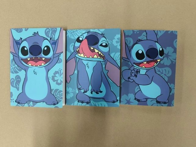 Set sešitů s motivem populárních postaviček z animovaného filmu Lilo a Stitch obsahuje tři kusy formátu A5. Každý sešit má pevnou barevnou obálku, na které je vyobrazen Stitch v různých hravých pozicích. Barevné provedení obálek je pestré a přitažlivé, přičemž dominuje modrá a fialová, což odpovídá charakteristickému vzhledu Stitche. Obálky jsou vyrobeny z kvalitního papíru s matným povrchem, který zajišťuje odolnost proti běžnému opotřebení při používání. Uvnitř najdete čisté linie, které usnadňují psaní a kreslení. Formát A5 je praktický pro školní použití, poznámky nebo kreativní zápisy. Sešity jsou vhodné pro děti i sběratele, kteří oceňují licencované produkty s oficiálním motivem. Motivy na obálkách jsou detailně zpracované s výraznými barvami a jasnými obrysy, což zvyšuje atraktivitu a pomáhá snadné identifikaci produktu v rámci merchandisingu. Tento set spadá pod kategorii merchandisu a licenčních dárků, konkrétně do širší skupiny ostatních hraček. Jeho univerzálnost a jednoduchost jej předurčují k využití jak ve školním prostředí, tak jako sběratelský či dárkový předmět. Celkově jde o praktický a vizuálně přitažlivý produkt určený pro fanoušky světa Lilo a Stitch, který kombinuje funkčnost se zábavným designem.
