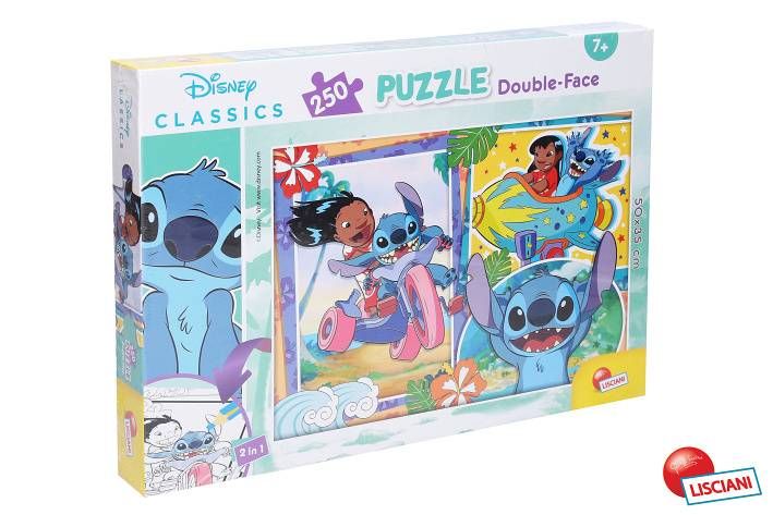 Lilo & Stitch Puzzle oboustranné 50x35 cm 250 dílků. Na jedné straně je barevný potisk. Na druhé straně je obrázek určený k vymalování.