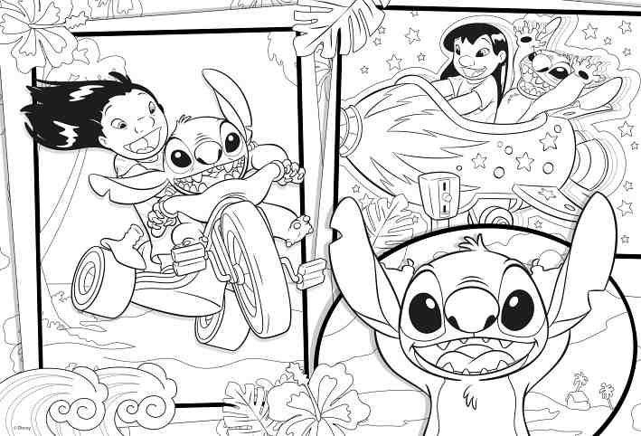 Lilo & Stitch Puzzle oboustranné 50x35 cm 250 dílků. Na jedné straně je barevný potisk. Na druhé straně je obrázek určený k vymalování.