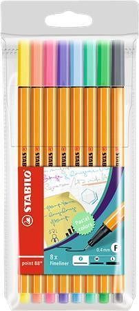 Linery "Point 88", sada, 8 různých pastelových barev, 0,4 mm, STABILO