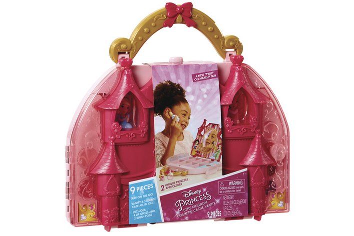 Snad každá holčička se chce dříve nebo později alespoň trošičku namalovat. S tímto setem se bude moci namalovat stejně jako její oblíbená princezna. Kosmetický kufřík vypadá jako zámek, je ozdoben třpytkami a má krásné zlaté ucho s mašlí. Uvnitř kufříku je i zrcátko a malé boxíky na uložení různých drobností. Holčička si může vybrat ze čtyř druhů lesků na rty a ze dvou tvářenek, které aplikuje pomocí štětečků v podobě dvou princezen.