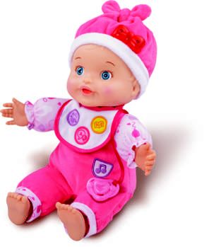 Úžasné miminko, které toho nejenom spoustu napovídá, ale i opakuje a pamatuje si, co děti říkají. Miminko se postupně "vyvíjí" od narození až do doby, kdy už si také samo zazpívá známé písničky. Po vyjmutí miminka z obalu mu vložte do úst dudlík. Vytažením dudlíku z úst miminko aktivujete do prvotního režimu - narození. V tomto období má miminko nejmenší slovní zásobu a i hlásek je více „miminkovský". Nechybí ani typické zvuky jako je cucání dudlíku, pití z lahvičky, říhnutí, zívání, smích. Zábavnou hrou a péčí o miminko se lze snadno dostat do úrovně 2. Tedy do úrovně, kdy je miminko starší, zná více slov a má i lepší výslovnost. Miminko používá nejenom vlastní slovní zásobu, ale učí se také nová slova od dětí. V další (nejvyšší) úrovni už umí miminko zazpívat 4 známé české písničky (Holka modrooká, Pec nám spadla, Šla Nanynka do zelí a Spi děťátko spi). Tyto písničky nejenom umí zazpívat, ale zábavnou formou, kdy občas záměrně vynechává část textu, učí děti slova písně a rozvíjí jejich hudební cítění. 3 obrázkové knížky, které jsou součástí balení, představují dětem věci z domácnosti, zvířátka, jídlo a pití. Stlačením tlačítka "Číst" cist spustíte hru se čtením obrázkových knížek. Miminko je podle úrovně buď čte samo, nebo společně s dětmi. Například také slovy „...já budu opakovat po tobě" vyzývá děti ke komunikaci. Pokud dítě říká, co vidí v knížce, miminko se snaží po dítěti opakovat. Tlačítkem „Mluvení" mluv aktivuje dítě hru, při které je, mimo jiné, miminkem provokováno k mluvení a odpovídání na jeho otázky. Po stisku tlačítka „Péče" pece vyžaduje miminko, nakrmit, dudlík, pohádku na dobrou noc apod. Spoustu příjemných melodií, broukaných popěvků i písniček najdete pod tlačítkem "Hudba" hudba. Součástí balení je: Vtech Little Love Mluvící miminko, 3 obrázkové knížky, dudlík, lahvička a zkušební baterie(2AA). Pouze v českém jazyce.