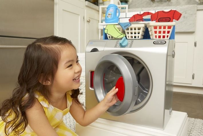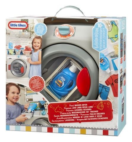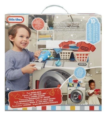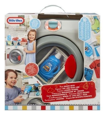 Little Tikes Moje první pračka je interaktivní hračka navržená tak, aby vypadala jako skutečný spotřebič, takže děti mohou předstírat, že perou prádlo stejně jako jejich rodiče.