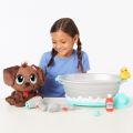 Užijte si zábavu s Psím salónem, ve kterém najdete vanu s funkční sprchou, takže děti mohou koupat své rozkošné štěně – čokoládově hnědého labradora. V balení najdete psí šampón na hraní, kartáč, fén na hraní a gumovou kachničku. Štěně je možné koupat, jeho srst se snadno vysuší. Pejsek má navíc obojek se známkou, kam doplníte jeho jméno, a certifikát o adopci. Smyjte slzy z očí štěňátka a najděte mu nový domov. Obsah balení: • 1 štěně labradora čokoládově hnědé barvy • 1 vana • 1 sprchovací hlavice • 1 kartáč • 1 psí šampón na hraní • 1 gumová kachnička • 1 fén na hraní • 1 certifikát o adopci