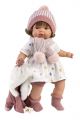 Mluvící a plačící panenka (po vyjmutí pojistky ihned funkční) s měkkým látkovým tělem a s vlásky po celé hlavě. Hlava a končetiny jsou vyrobené z kvalitního měkčeného vinylu. Po vytažení dudlíku z úst začne panenka říkat „mama“, „papa“ a vydávat reálný zvuk plačícího dítěte, který lze utišit opět magnetickým dudlíkem. Velikost panenky 38 cm. Ručně vyrobeno ve Španělsku, baleno v dárkové krabici. Doporučený věk od 3 let. K panence je možné dokoupit další originální oblečení z nabídky Llorens pro panenky velikosti 38 cm. Součástí balení je 3 x knoflíková baterie LR44 s návodem na její výměnu. Baterie jsou spotřební zboží a proto jejich vybití není důvodem k reklamaci panenky.