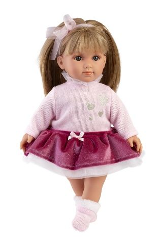 Panenka bez zvuku s měkkým látkovým tělem a s vlásky po celé hlavě, podobající se malé slečně. Velikost 35 cm. Ručně vyrobeno ve Španělsku, baleno v dárkové krabici. Doporučený věk od 3 let. K panence je možné dokoupit další originální oblečení z nabídky Llorens pro panenky velikosti 35 cm.