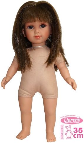 Panenka bez zvuku s měkkým látkovým tělem a s vlásky po celé hlavě, podobající se malé slečně. Velikost 35 cm. Ručně vyrobeno ve Španělsku, baleno v igelitovém obalu. Doporučený věk od 3 let. Tento model je bez oblečení a proto doporučujeme k panence dokoupit originální oblečení z nabídky Llorens pro panenky velikosti 35 cm.