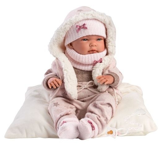 Miminko bez zvuku s vinylovým tělem s možností koupání, na kterém je zachycen doslova každý detail dětského tělíčka včetně roztomilých miminkovských faldíků a pohlaví. Miminko lze koupat, ale je potřeba dát pozor, aby se nenamočily řasy. Odlepené řasy nejsou pak důvodem k reklamaci. Ruce a nohy jsou k tělu přichycené kloubem. Miminko je polohovací a může i sedět. Dudlík v balení slouží pouze jako doplněk. Velikost 40 cm. Ručně vyrobeno ve Španělsku, baleno v dárkové krabici. Doporučený věk od 3 let. K miminku je možné dokoupit další originální oblečení z nabídky Llorens pro miminka NEW BORN velikosti 40-42 cm.