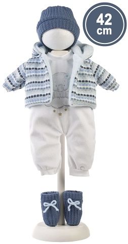 Mluvící miminko s měkkým látkovým tělem, které se po zatlačení na hrudník začne smát a říkat „mama“, „papa“. Ruce a nohy jsou k tělu přichyceny kloubem. Miminko je polohovací a může i sedět. Tento model je bez oblečení a proto doporučujeme k panence dokoupit originální oblečení z nabídky Llorens pro miminka NEW BORN velikosti 40-42 cm nebo 43-45 cm. Dudlík v balení slouží pouze jako doplněk. Velikost 42 cm. Ručně vyrobeno ve Španělsku, baleno v igelitovém obalu. Součástí balení je 3 x knoflíková baterie LR44 s návodem na její výměnu. Baterie jsou spotřební zboží a proto jejich vybití není důvodem k reklamaci panenky.