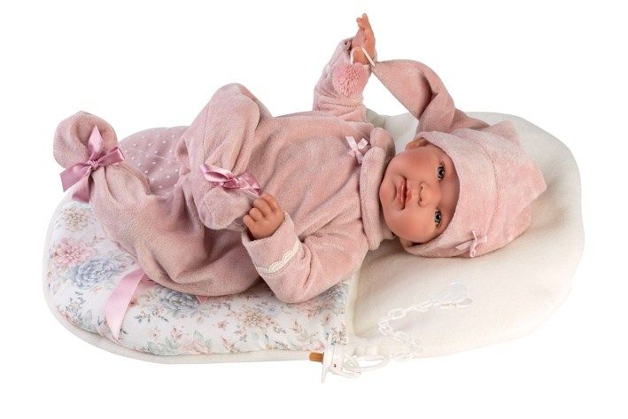 Mluvící miminko s měkkým látkovým tělem, které po zatlačení na hrudník začne říkat „mama“, „papa“ a vydávat reálný zvuk plačícího miminka. Ruce a nohy jsou k tělu přichyceny kloubem. Miminko je polohovací a může i sedět. Dudlík v balení slouží pouze jako doplněk. Velikost 44 cm. Ručně vyrobeno ve Španělsku, baleno v dárkové krabici. Doporučený věk od 3 let. K miminku je možné dokoupit další originální oblečení z nabídky Llorens pro miminka NEW BORN velikosti 43 cm. Součástí balení je 3 x knoflíková baterie LR44 s návodem na její výměnu. Baterie jsou spotřební zboží a proto jejich vybití není důvodem k reklamaci panenky.