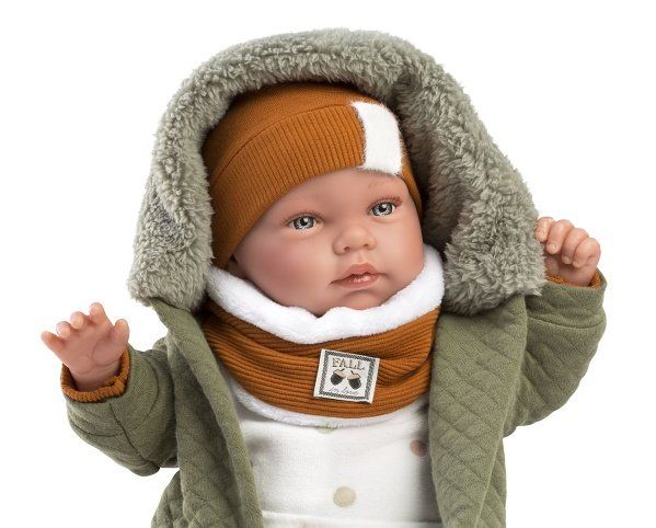 Mluvící miminko s měkkým látkovým tělem, které po zatlačení na hrudník začne říkat „mama“, „papa“ a vydávat reálný zvuk plačícího miminka. Ruce a nohy jsou k tělu přichyceny kloubem. Miminko je polohovací a může i sedět. Dudlík v balení slouží pouze jako doplněk. Velikost 44 cm. Ručně vyrobeno ve Španělsku, baleno v dárkové krabici. Doporučený věk od 3 let. K miminku je možné dokoupit další originální oblečení z nabídky Llorens pro miminka NEW BORN velikosti 43-45 cm. Součástí balení je 3 x knoflíková baterie LR44 s návodem na její výměnu. Baterie jsou spotřební zboží a proto jejich vybití není důvodem k reklamaci panenky.