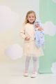 Mluvící miminko s měkkým látkovým tělem, které se po zatlačení na hrudník začne smát a říkat „mama“, „papa“. Ruce a nohy jsou k tělu přichyceny kloubem. Miminko je polohovací a může i sedět. Dudlík v balení slouží pouze jako doplněk. Velikost 44 cm. Ručně vyrobeno ve Španělsku, baleno v dárkové krabici. Doporučený věk od 3 let. K miminku je možné dokoupit další originální oblečení z nabídky Llorens pro miminka NEW BORN velikosti 43-45 cm. Součástí balení je 3 x knoflíková baterie LR44 s návodem na její výměnu. Baterie jsou spotřební zboží a proto jejich vybití není důvodem k reklamaci panenky.