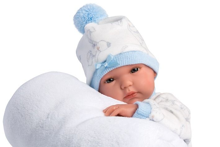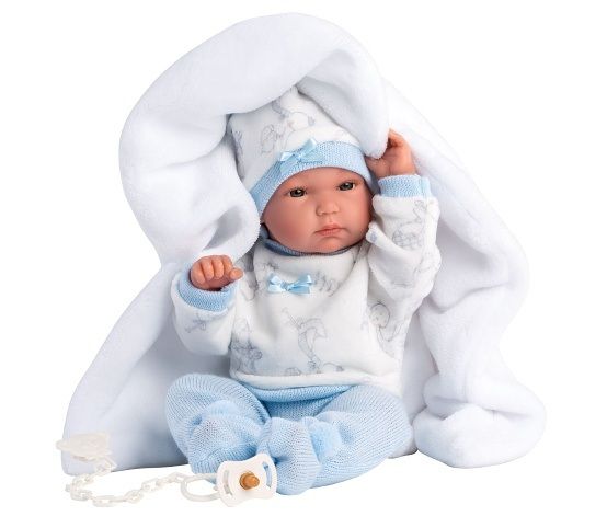 3dílný obleček s dečkou a muchlacím kapesníčkem s bambulkou pro panenku miminko NEW BORN Llorens velikosti 35-36 cm. Vyrobeno ve Španělsku, baleno v igelitovém obalu s plastovým nebo kartonovým ramínkem.. Doporučený věk od 3 let.