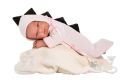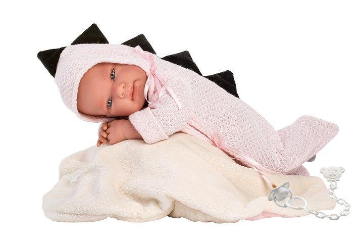 1dílný obleček s ozdobným dinosauřím hřbetem a s fleecovým fusakem ztvárňujícím dinousauří vejce. Určeno pro panenku miminko NEW BORN Llorens velikosti 43-44 cm. Vyrobeno ve Španělsku, baleno v igelitovém obalu s plastovým nebo kartonovým ramínkem. Doporučený věk od 3 let.