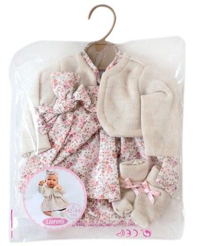 5 kusů oblečení pro panenku miminko NEW BORN Llorens velikosti 43–44 cm. Vyrobeno ručně ve Španělsku, baleno v igelitovém obalu s plastovým ramínkem. Doporučený věk od 3 let.