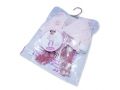 4dílný obleček pro panenku Llorens velikosti 38 cm. Vyrobeno ve Španělsku, baleno v igelitovém obalu s plastovým nebo kartonovým ramínkem. Doporučený věk od 3 let.