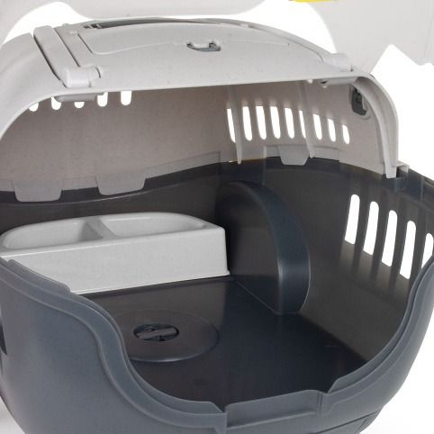 4) Dvojitou misku na krmení a vodu, kterou lze umístit na dno základny. Během cesty je tedy kdykoliv možné zastavit a dát zvířeti i rychle napít.