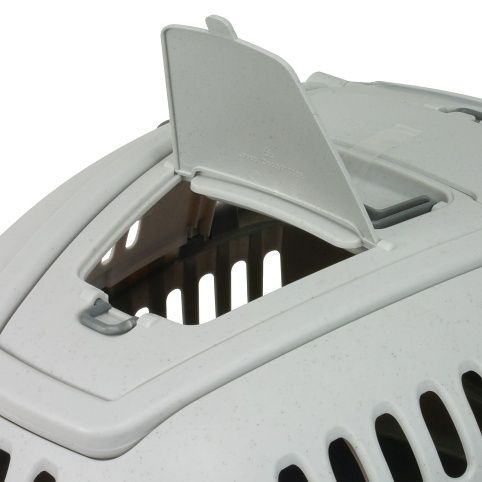3) Odnímatelnou horní kopuli s otevíracím průhledným štítem, která umožňuje výhled na zvíře po celou dobu přepravy. Tím je také zvířátku umožněn kontakt s vnějším okolím. V horní části je také uzavíratelné okénko, kterým je možné mazlíčka po dobu přepravy hladit a být s ním v kontaktu. Své místo zde má i další uzavíratelný úložný prostor pro drobné předměty dle potřeby (ramenní popruh na přenášení přepravky 13623, vodítko, očkovací průkaz, kartáč, případně pamlsky). V horní kopuli se dále nachází malé madlo pro snadnou manipulaci, velká rukojeť pro převoz a dvě očka pro uchycení popruhu přes rameno.