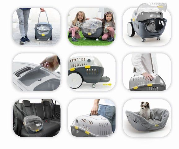 Elegantní, funkční a praktická přepravka s madlem na kolečkách a s ergonomickou rukojetí pro snadnou přepravu našich mazlíčků, kterou lze velmi rychle s příslušnými doplňky (matrace nebo polstrovaný potah základny) předělat na domácí pelíšek a mazlíčka tak přepravovat v prostoru, který je pro něho dobře známý a na který je zvyklý. To je velmi důležité především při přepravě nemocných zvířat. Ale i běžné samotné cestování pro některá zvířata může být stresující a tímto způsobem se stres z cesty velmi eliminuje. Velkou výhodou je skutečnost, že i při jakémkoliv krátkém nebo delším pobytu mimo svůj domov, neztrácí zvířátko své známé útočiště a jeho majitel zároveň nemusí převážet plno dalších věcí.