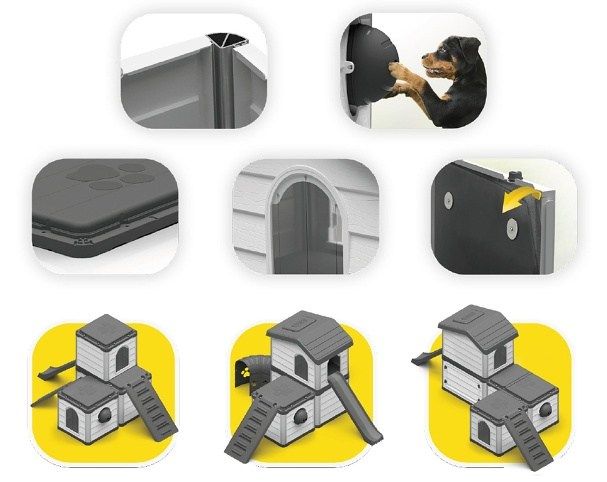 Praktický, odolný, krásný a pohodlný domeček pro psy a kočky je perfektní místo, kde může váš mazlíček spát, odpočívat a hrát si. Domeček je také výborným útočištěm před povětrnostními podmínkami.