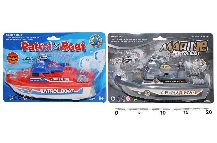 Loď do vody. Velikost 20 cm. 2xAA baterie. 2 varianty - šedá, červená.