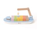 Zábavná malá nákladní loď, naložená pastelově barevným zbožím. Loď má 12 barevných magnetických bloků a děti je mohou libovolně nakládat a vykládat posunutím flexibilního jeřábu. Barevná loď poskytne hodiny nápadité zábavy pro vaše batole, zlepší jeho obratnost a koncentraci.