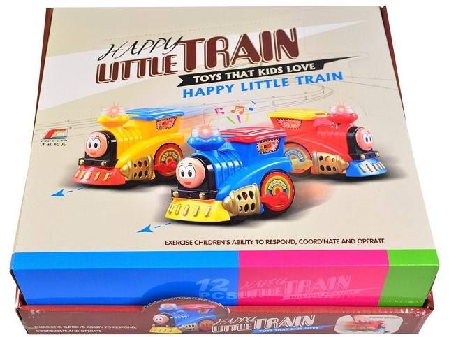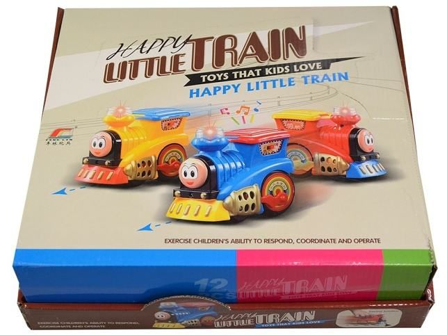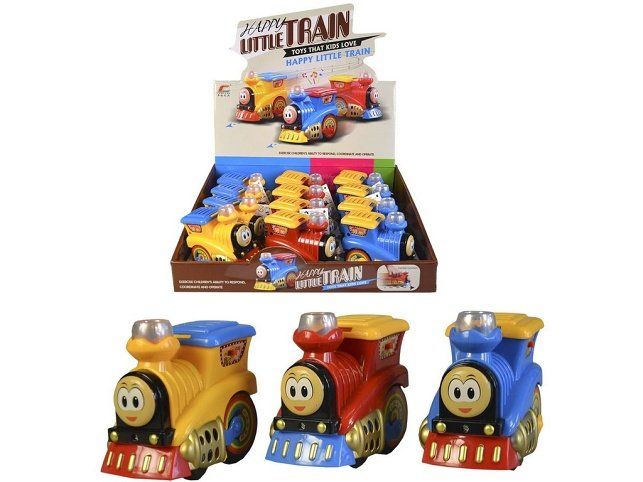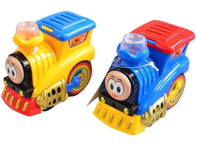 Lokomotiva na setrvačnik, na baterie se světlem a zvukem, 9 cm, 12 ks v boxu