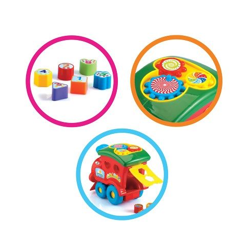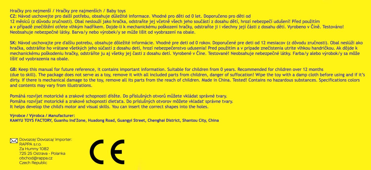 Barevná vkládačka ve tvaru lokomotivy je určena pro ty nejmenší. S tímto kouskem si děťátko užije zaručeně spoustu zábavy! Jednotlivé tvary s obrázky lze vkládat do příslušných otvorů. Vkládačka rozvíjí motorické, zrakové a sluchové schopnosti děťátka.