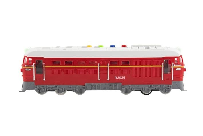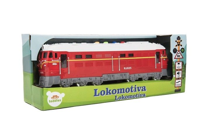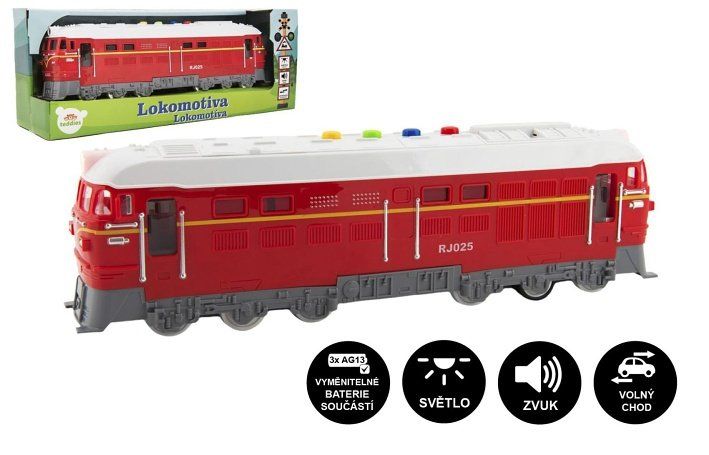 Krásná lokomotiva červené barvy vyrobená z plastu je velikosti 35 cm. Baterie 3x AAA jsou součástí výrobku. Vlak vydává klasické zvuky mašiny. Skvělý tip na dárek pro malé strojvedoucí. Mašina je na setrvačník.