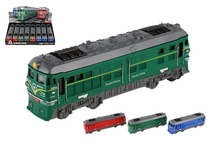 Vlak je dlouhý 18 cm, vyrobený z kvalitního plastu a poháněný setrvačníkem, což umožňuje plynulý pohyb bez potřeby baterií. Lokomotivy jsou k dispozici ve třech různých barvách, takže si malí strojvedoucí mohou vybrat svůj oblíbený model. Lokomotiva je ideální pro malé nadšence do železnice.
