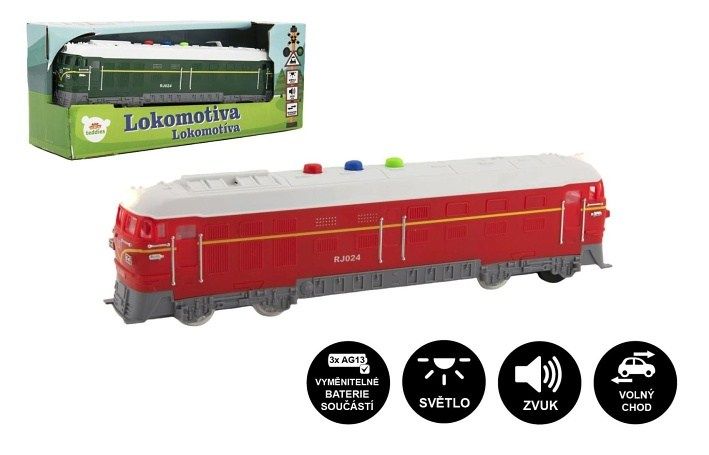 Krásná lokomotiva vyrobená z plastu je velikosti 23 cm. Baterie 3x AG13 jsou součástí výrobku. Vlak vydává klasické zvuky mašiny. Skvělý tip na dárek pro malé strojvedoucí. Mašina je na setrvačník.