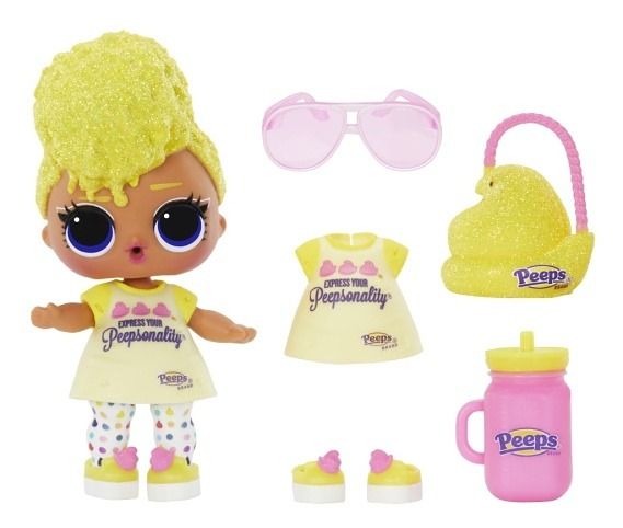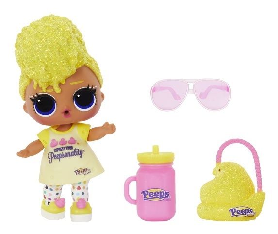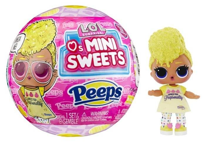 Představujeme limitovanou edici L.O.L. Surprise! Loves Mini Sweets – Peeps! L.O.L. Surprise! se spojilo se značkou cukrovinek Peeps, aby vám přineslo nejdivočejší jaro všech dob. Každá panenka má jedinečný styl se třpytivými detaily, které ladí s oblíbenými cukrovinkami Peeps! Rozbal 7 překvapení a jednu ze dvou panenek Tough Chick nebo Cute Bunny. Když dáš panence napít z lah-vičky, bude plivat vodu. Obsah balení: • 1 panenka • 1 lahvička • 1 módní doplněk • 1 pár bot • 2 doplňky • 1 samolepka Velikost L.O.L. panenek: cca 8 cm. Poznámka: Jedná se o jednodruhové produkty, v balení je vždy jedna ze dvou postaviček, která je zobrazená na obale.